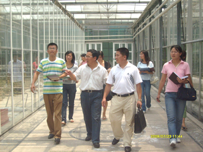 上午,素有“甜瓜之父”美誉的卜崇兴博士,冒着酷暑带领我们参观了国家科技部863计划重大项目——“设施农业精准生产技术系统构建与利用”项目,以及一系列各种类型的设施农业,对文洛型玻璃温室、PC板连栋温室、单体大棚、平棚、立体栽培等有了直观认识。结合卜博士的讲解,我们对现代化的设施农业以及科学灌溉系统的发展前景更加充满信心。