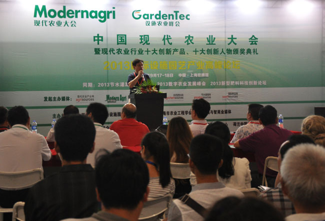 【华维 讯】2013年9月17日,“2013国际现代农业大会”在上海世博馆隆重召开,会议包括了“AgriChem 2013新型肥料科技创新论坛、IrrigationTec 2013节水灌溉高峰论坛、GardenTec 2013国际设施园艺产业高峰论坛”,及“2013中国现代农业十大创新产品奖、2013中国现代农业十大创新人物奖和2013中国现代农业创新力企业100强”颁奖等一些列活动。