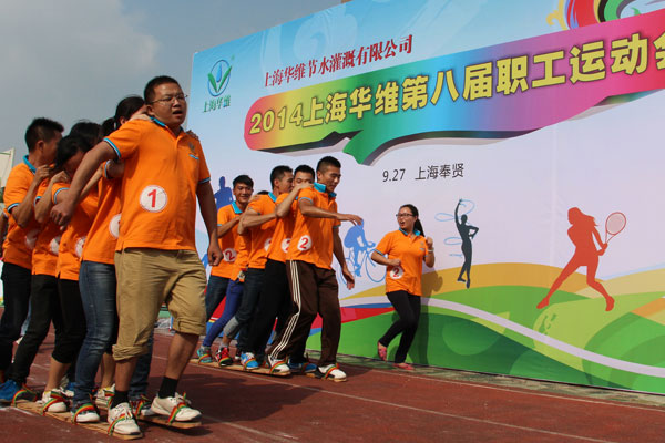 【华维 讯】2014年9月27日,上海华维节水灌溉有限公司全体员工在上海奉贤展开了一场别开生面的“2014上海华维第八届职工运动会”。华维人及华维人家属近150余人在校园里重温了美好的学生时代,在烈日骄阳下竞技协作、载歌载舞,在欢声笑语中挥洒汗水、展现自我,在团队拼搏中群策群力、情感互动。