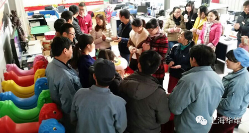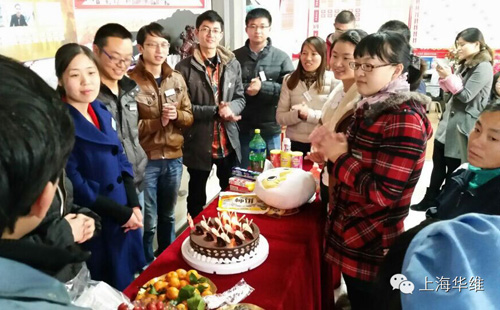 咳咳,还是从头说起。 华维每月会为当月过生日的华维人举行集体庆生会,有衣着靓丽的办公室人员,也有体现劳动光荣的车间人员,如果下面你不小心看到了他们不太清洁的衣服,请为他们点个赞,因为劳动者才是最美的人!  好了,背景交代完毕,下面上图喽!