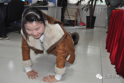华维“小眼俱乐部”的一妹子抽中了俯卧撑表演,不得不说,妹子,基本功不错,在家没少练啊,哇咔咔......  当我低头的瞬间,你是否还能看到我的眼(友情提示:请注意她的眼,哈哈哈)
