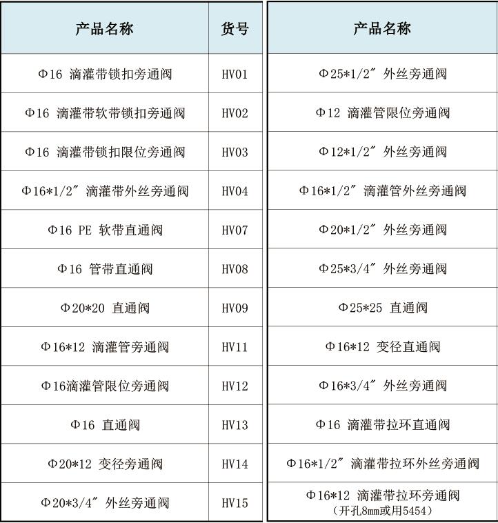 首页 > 产品中心 > 产品列表 > HV01滴灌带锁扣旁通阀