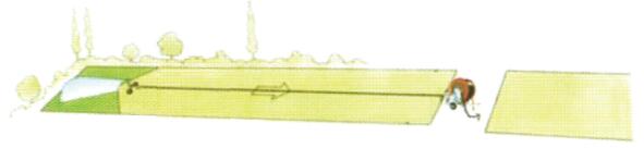 2、利用牵引设备把PE管以及连接在PE管上的喷头车牵引至田块的另一端;